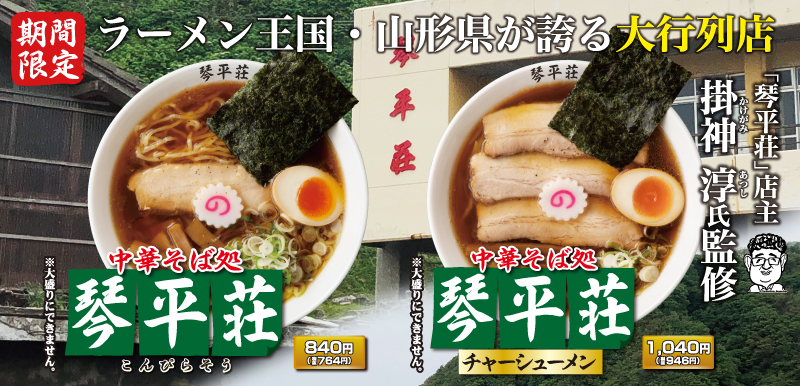 今回のコラボラーメンですか?いやぁ、私のところの雰囲気をかなり出してくれたと感謝しています。開発の皆さんは本当に大変だったと思います(笑)。特にうちの麺はかなり特徴がありますから、私も最初はとても不安でした。最終的にはとても良い仕上がりになって、お客様には『琴平荘の味わい』を楽しんでもらえるコラボができたと思います!!イベント事はほとんど断っているので、この機会にたくさんの方々に召し上がって欲しいです!!ボリュームたっぷり200g!!豪快にすすってくださいね!!