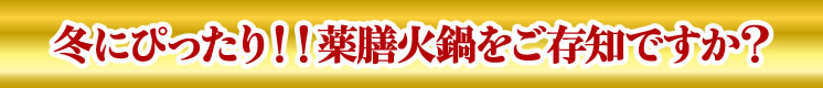 “薬膳”とは『食べて美味しく、身体にも良い』という“医食同源”の考えのもと、食材、生薬などを組み合わせ、健康を考えた中国料理です。一説にはモンゴル帝国の初代皇帝チンギス・ハーンが考案し、世界の王侯貴族が『美』と『強さ』を求め好んで食したと言われています。その“薬膳”が中国を飛び出し、アジアの華僑や世界中の中華街で親しまれている“火鍋”に組み込まれて『薬膳火鍋』は完成しました。火鍋の鍋は、左右で二分されており、薬膳本来の美味しさが楽しめるノーマルな味と、そこに唐辛子等の辛味を足した刺激的な味の2つの味があるのが特徴の一つです。