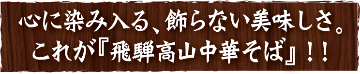 長年、愛されている飛騨高山の中華そば。近年は観光客向けに『飛騨高山ラーメン』との名前がガイドブックなどでは多く見られますが、「地元では長年『中華そば』と呼ばれているんですよ。」そう語るのは、外国人もびっくりするくらいの長蛇の列ができることで知られる、今最もホットな飛騨高山中華そば『麺屋しらかわ』の店主白川さん。「僕ら小さい頃から、ずっとこの中華そばを食べて大きくなりましたね。飛騨高山中華そばの特徴は、煮干しを効かせたシンプルな醤油味の鶏ガラベースのスープ。そこに、この地方ならではの、ちぢれた細麺を合わせるのが特徴なんです。もちろんお店ごとに作り方を試行錯誤しているので、そのお店ならではの味を食べ比べても面白いかもしれませんね。」