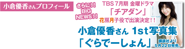 1998年9月5日生まれ。千葉県出身。身長167㌢、B87(Gカップ)・W59・H89。趣味・ダンス。TVCMや映画、ドラマを中心に女優として活動中。昨年4月の『週刊ヤングマガジン』(講談社)でグラビアデビューし、数々の雑誌の表紙を飾ってきた。1月には映画『咲‐阿知賀編‐episode of side-A』が公開され、現在関東ローカル局中心にドラマ『人狼ゲーム ロストエデン』が放映され、4月7日には映画『人狼ゲーム インフェルノ』が公開された。