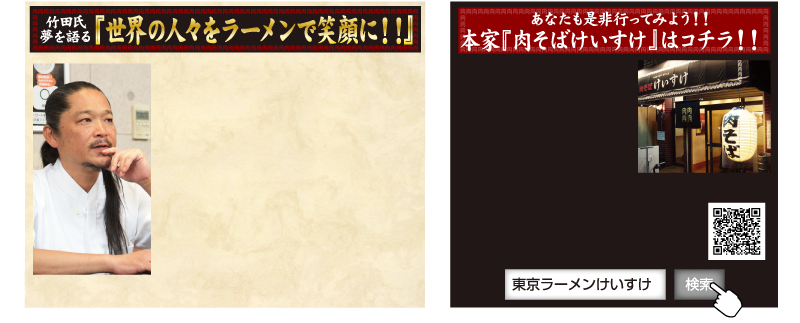 東京都江東区に本店を置く『肉そばけいすけ』。また、他にもけいすけグループでは多彩な味わいのブランドを展開中です。詳しくはホームページでチェックしてみてください。