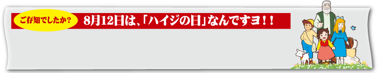 2019年で放映から45周年を迎える『アルプスの少女ハイジ』。作品に含まれている時代にとらわれない多くのメッセージと感動をあらゆる世代の心に残したいという願いを込めて、8月12日を『ハイジの日』と制定したそうです。