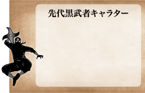 3、4作目の黒武者PRキャラクターの『ムシャノシン』。宿敵のブラックとは幾度となく激戦を繰り広げてきた影忍者。今回も出番が来るぞとスタンバイしていたが、新たな黒武者に『武者五郎』が就任したことを知ると、一陣の風を残して姿を消した。