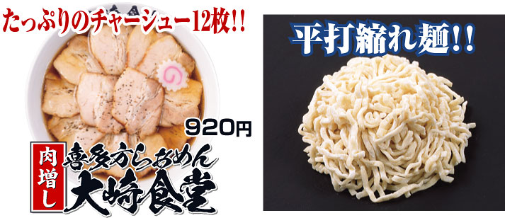 『喜多方ラーメン』は『札幌ラーメン』『博多ラーメン』と共に日本の三大ラーメンの一つと言われている。喜多方市は人口約5万人に対し、100軒以上のラーメン店があり、人口比率で見ると日本一ラーメン店が多い町と言われている。80年代後半では一大ブームを日本中に巻き起こした。中高年には懐かしさ溢れる一杯であるとともに、若者には新鮮な美味しさを提供する。スープは豚骨、鶏ガラ、煮干しを煮込んで作られるあっさり醤油スープの優しい味わい。麺は太めの平打多加水麺で、縮れているのが特徴。また、『肉増し』の盛り付けは、ラーメン丼一面を覆う程のチャーシューが盛付けられ、『喜多方ラーメン』の魅力の一つとなっている。