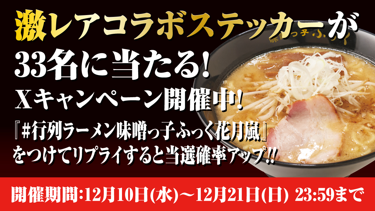 らあめん花月嵐を運営するグロービート・ジャパン株式会社(以下、「弊社」といいます)が主催する「味噌っ子ふっくコラボ記念リポストキャンペーン」(以下、「本キャンペーン」といいます)に応募の方(以下、「応募者」といいます)は、以下をよくお読みいただき、同意の上応募してください。本キャンペーンに応募された場合には、以下に同意したものと看做します。万が一同意いただけない場合は応募を中止してください。