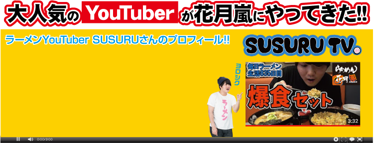 そして、専用麺になってワンランクグレードアップした『THE油そば』に挑むのはラーメンYouTuberとして大活躍中の『SUSURU TV』の“SUSURU”さんに決定!!毎日ラーメンを食し動画をアップしているSUSURUさんからはどんなコメントが聞けるのでしょうか!!