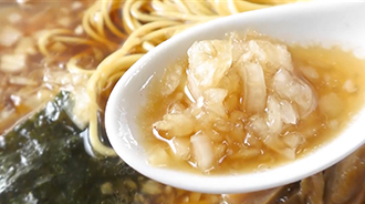 八王子ラーメンの最大の特徴である刻んだ生の玉ねぎ。シャキシャキとした心地よい歯応えを感じさせ、そして玉ねぎの旨みが溶け出したスープは独特の満足へと誘います。
