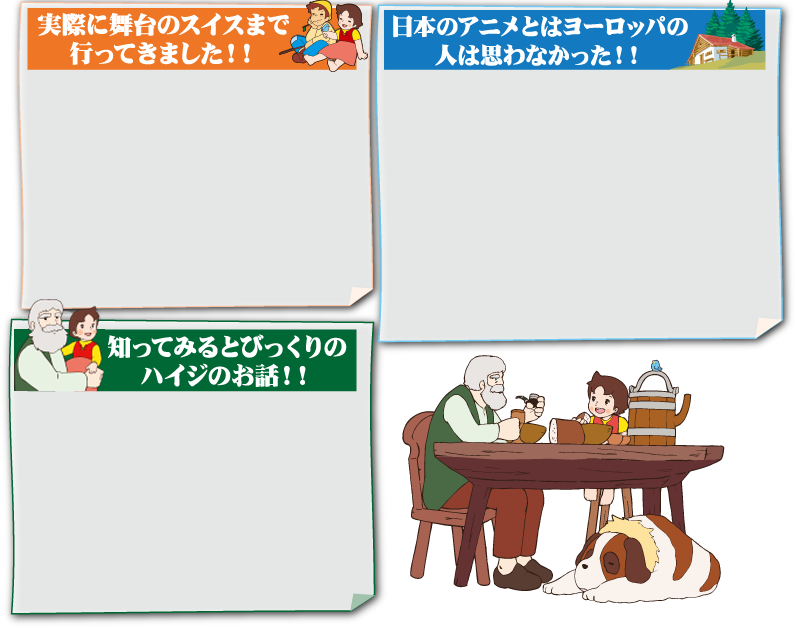 アルプスの大自然を舞台にした、心温まるハイジの物語と美しいスイスの魅力を紹介するホームページです。『アルプスの少女ハイジ』公式イベント、グッズ情報など最新のニュースを発信してます。