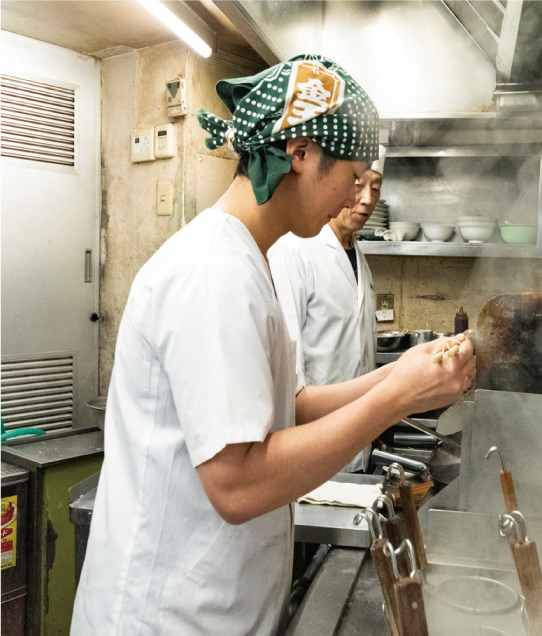 「お陰様で最近では、海外からの観光客と思われる方も多く当店までお越し頂いています。同じ国の出身同士が当店の客席で顔を合わせて、料理を食べながら楽しそうに話している光景は何とも時代の移り変わりを感じています。また私の跡を継ぐべく、三代目も日々厨房に立ち腕を奮っています。時代は変わり続けますが、私達は、これからも変わることのない喜楽ならではの味を作り続けていきます。三代目には創業100年を期待しているんですよ(笑)」