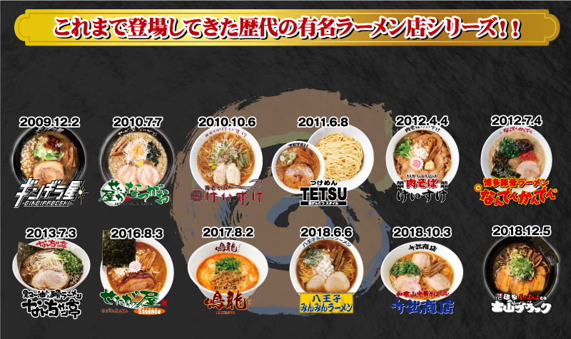 これまで花月嵐に登場してきた歴代の有名ラーメン店監修の期間限定ラーメンシリーズ。