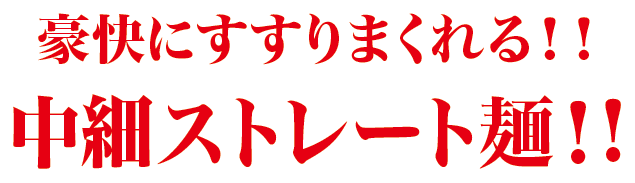 豪快にすすれて、最高の満腹感も味わえる万能・中細ストレート麺。ラーメンの醍醐味をたっぷり体感しよう!!