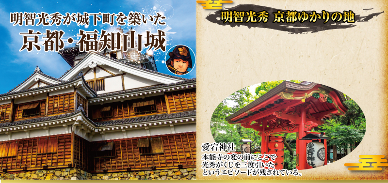 光秀は織田信長の命を受け、天正3年(1575年)から丹波平定に着手します。丹波国平定が達成されると、この地にあった『横山城』を改築し、『福知山城』と改名しました。氾濫の多かった川の治水工事や、地子銭とよばれた税金を免除したりするなど、城下町を整備し、領民が安心して暮らせるように善政を敷いたそうです。