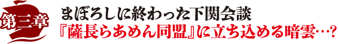しかし、その長州藩の動きを事前に察知していた幕府は、西郷隆盛・大久保一蔵率いる「薩摩藩」に長州藩のらあめんを封じ込めるように命じた。