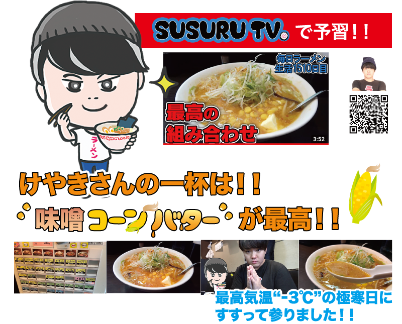 けやきさんに僕が行かせてもらったのは2年前(2019年)の12月で、最高気温-3℃の極寒日。最高の味噌ラーメン日和でしたね(笑)。札幌の人気店なので観光客っぽい方や外国人の方もいらっしゃって店内は盛り上がってましたね。けやきさんは、お店に入った瞬間の香りでもう旨いってわかるんです。でも、スープは想像していたより優しくて、野菜の甘みがしっかり溶け込んだどこか懐かしい味わいなんです。僕は「味噌コーンバターラーメン」をプッシュしたんですが、食べるのに夢中でバターの溶け出しに気がついたのは終盤でした(笑)。バターは本当にやみつきになりますよ。最後は穴あきレンゲを使ってコーンも残さず食べて完食でした!これからどんどん寒くなりますから、全国の花月嵐さんで、けやきさんの一杯が食べられるのは最高ですね!