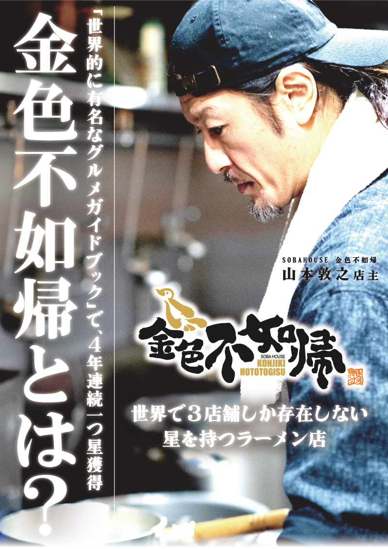 東京新宿御苑に本店を構える日本を代表するラーメン店『SOBAHOUSE 金色不如帰』