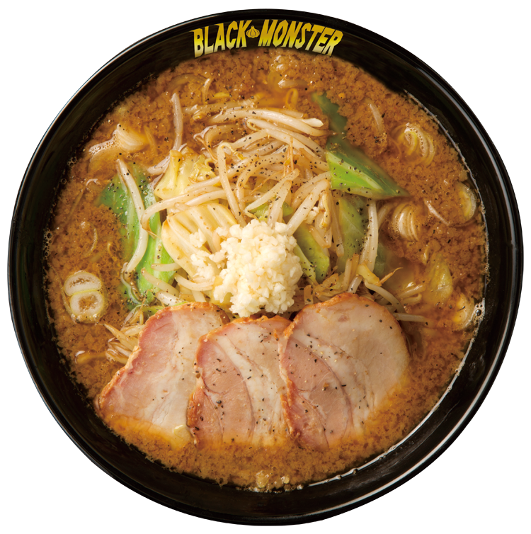 モチモチ食感のオリジナル新特製太麺。これまでとは違ったブラックモンスタースープとの相性をご堪能あれ!!