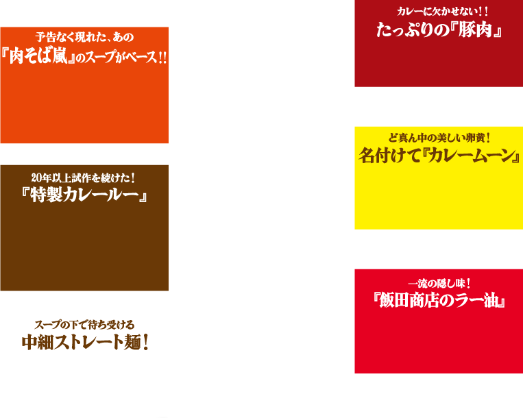 今回のスープは、実は2022年5月に発売された“肉そば嵐”のスープがベース。特製カレールーとの相性も抜群で、シンプルな中にも複雑な味わいが楽しめる。まさに最高のコンビネーション!!
