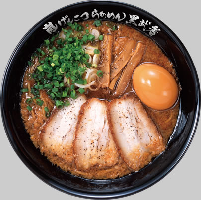 あの『嵐げんこつらあめん黒武者』が一回り大きくなって復活を遂げた。この『黒武者』は元々、花月嵐歴代No.1人気を誇る期間限定ラーメン『嵐げんこつらあめんブラック』の味の改良を行っている最中に、思いがけず誕生した、見た目はその違いが分からない程に似ているが口にすると全く趣が異なるという、言うなれば『ブラック』の影武者と呼ぶに相応しいラーメンであった。ところが3年半前の販売後、予想以上の反響が花月嵐ラーメンマエストロ達に届いた。『ブラックも好きだが、同じくらいに黒武者もまた食べたい味』との高い評価。『ブラック』にも負けないラーメンになるよう、花月嵐ラーメンマエストロ達は、再登場にあたり連日厨房に向かい、新生『黒武者』の研鑽に励んだ…。