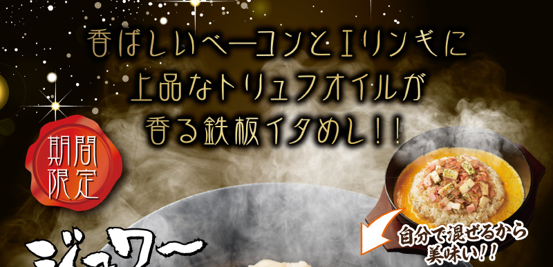 香ばしいベーコンとエリンギに上品なトリュフオイルが香る鉄板イタめし!!