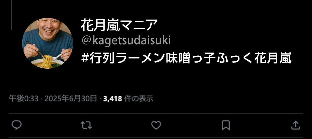 本キャンペーンは、『らあめん花月嵐公式Xアカウント(@CPKagetsuArashi)』をフォロー。その後、ご自身のXから本キャンペーン対象のポストをリポストしてください。