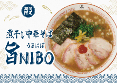 煮干しの旨味を,ぎゅっと詰め込んだ、 じんわりとしみわたる一杯。 『煮干し中華そば 旨NIBO』 ただいま、絶賛発売中